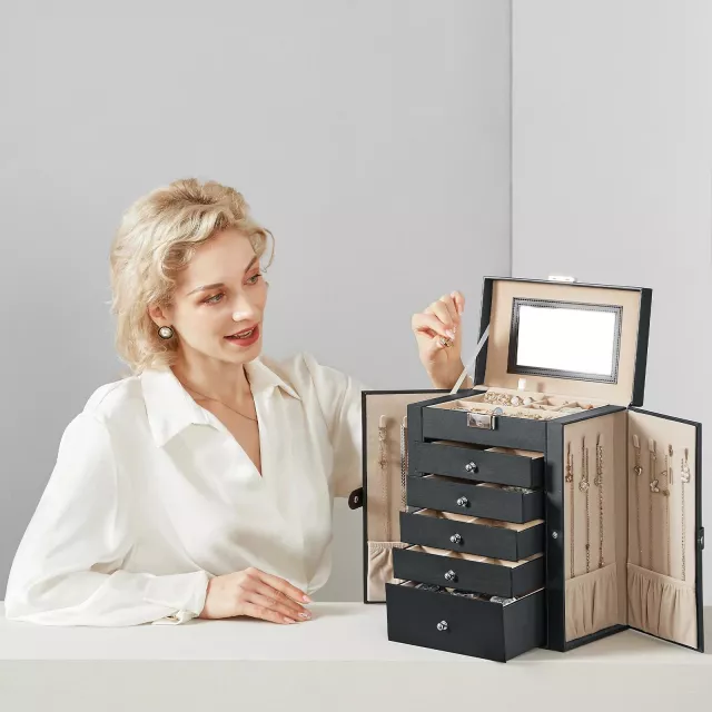 This organizer is ideal for anyone who wants a clean, clutter-free way to store their jewelry. It features a built-in mirror that makes getting ready quick and convenient—no need to reach for a separate mirror while choosing accessories. Use it on your vanity, dresser, or closet shelf to streamline your morning routine and keep your valuables protected throughout the week.